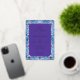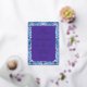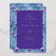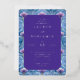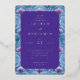 This elegant wedding invitation features a sophisticated rectangular layout with a central purple text area surrounded by intricate blue and purple floral patterns. The design showcases a harmonious blend of cool tones, creating an inviting and festive atmosphere. With smooth gradients and clean lines, the digital illustration technique adds a modern touch to the traditional botanical motifs. The serif typography enhances the formal feel, making it perfect for celebrating a special occasion with style and grace.