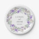Elegant Purple Floral Wreath Wedding Paper Plate