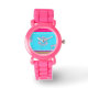 Cute watches that would make great gifts for girls. These watches feature a purple and white flower art design n a light blue background with other embellishments.