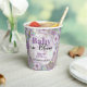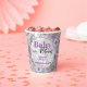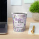 This is a charming and customisable baby shower paper cup that beautifully captures the joy and anticipation of a new life. The cup is adorned with an intricate floral design, featuring a vibrant mix of pastel colours, including shades of purple, pink, and green. This creates a visually appealing backdrop that exudes warmth and elegance.