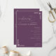 This wedding program features a sophisticated deep purple background with elegant cursive and clean sans-serif typography, creating a formal yet inviting atmosphere. The layout is vertically oriented, with decorative geometric lines adding a modern touch to the classic design. Perfect for weddings, it includes customizable sections for ceremony details while maintaining a cohesive and stylish look. The use of negative space highlights key information, ensuring readability and a polished appearance ideal for significant celebrations.