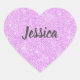 A girly heart shaped sticker with a purple faux glitter background. personalise them stickers with your name. Designed for you by Blackberry Boulevard.