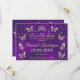 Celebrate your Quinceañera in style with this Elegant Purple Gold 15th Birthday Quinceañera design. Featuring a unique tiara crown at the top and golden butterflies flying around. The back showcases a modern side border of golden butterflies, along with space for a personalised message. This design is perfect for a 15th birthday quinceañera celebration. You can customise all the details to match your special day. See the whole matching collection!