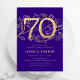 Elegant purple gold 70th birthday party invitation. Customisable modern feminine design featuring roses botanical accents and faux glitter gold. Simple floral invite card perfect for a stylish female bday celebration. Personalise with your own details. Printed Zazzle invitations or instant download digital printable template.