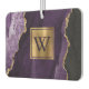 This elegant design features a background image of purple watercolor agate trimmed with gold faux glitter. Personalize it with your monogram initial in purple serif font on a double-bordered gold faux brushed metal rectangle.