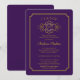 An elegant banner scroll and scalloped frame gold tone and purple graduation party invitation design that can be personalised for high school, college, university or vocational school graduations. Design by Holiday Hearts Designs (all rights reserved).