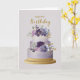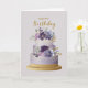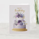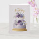 A beautifully designed birthday card featuring a soft purple tiered cake adorned with delicate floral accents and shimmering gold details. The elegant “Happy Birthday” lettering and refined color palette create a graceful and timeless look, perfect for celebrating someone special.