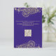 Elegant purple wedding RSVP card featuring a gold styled henna or tattoo inspired design resembling those seen in India or Morocco. This RSVP card matches other wedding stationery.