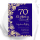 Elegant Purple Gold Roses 70th Birthday Invitation