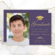 Elegant Purple Gold Script Cap Photo Graduation Announcement