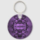 A gorgeously romantic black swirly decorative frame on a purple background and space for your name. Shown here on a custom key chain.