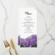 This elegant floral design features purple hydrangeas. The beautiful purple hydrangeas are complimented with their greenery. The bride's and groom's names are colour matched to the purple of the hydrangea flower and are encircled with three geometric rings. This is the perfect elegant floral wedding design ideal for any wedding theme. Elegant hydrangea flower wedding menu card design with modern elements. Matching wedding invitations and other stationery items are also available.