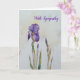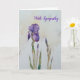 Convey your deepest condolences with this elegant sympathy card. A sophisticated watercolor painting of a purple iris adorns the cover with the script text "With Sympathy" above. Inside a heartfelt line from poet Emily Dickinson, "unable are the loved to die, for love is immortality." Painted especially for Bewildered Goat Studios by international watercolorist Doug Cushman.