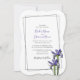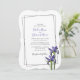 This elegant floral design features purple irises. The beautiful purple irises with their green stems are placed on top of a geometric thin line border. The bride's and groom's names are colour matched to the purple of the iris flower. A larger image of the elegant iris flowers is used on the reverse side. This is the perfect elegant floral wedding design ideal for any wedding theme. Elegant iris flower wedding invitation design with modern elements. Matching wedding stationery items and other wedding invite formats are also available.