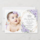 Personalize this elegant soft lavender purple floral baptism/ christening photo invitation with your own wording easily and quickly. Simply click the customize it further button to edit the texts, change fonts and fonts colors. Matching items available in store. (c) The Happy Cat Studio