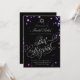 Sparkly bokeh confetti lights shimmer in translucent pink, purple and blue in the background of this fabulous and glamourous Bat Mitzvah invitation, with simple chic white script and sans serif lettering, and a simple Star of David.