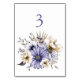 A beautiful bouquet of watercolor florals in purple, lilac and cream decorates the bottom with your table number at the top. Easily personalise the number.