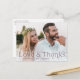 Elegant wedding thank you postcards featuring your full-bleed horizontal wedding photo with "Love and Thanks" in plum purple lettering. Personalise these modern photo thank you postcards with your name for a stylish and heartfelt touch. The back of the photo wedding thank you postcard includes space for your return address and a personal message, making it easy to share your gratitude with guests. Perfect for showcasing your favourite wedding photo while expressing your appreciation.