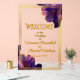 Welcome guests in unforgettable style with the Luminous Violets Acrylic Wedding Welcome Sign, a luxurious statement piece designed for elegant celebrations. Featuring radiant violet florals, rich jewel-toned purple hues, and refined gold framing, this acrylic welcome board sets the tone for a romantic, upscale wedding from the moment guests arrive.