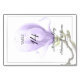 Elegant and gentle wedding table number design featuring a beautiful purple watercolor Magnolia blossom and a luxurious faux silver frame.