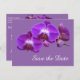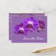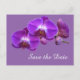 Beautiful, elegant, purple orchid flowers save the date postcard.