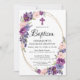 Elegant Purple Pink Floral Gold Frame Baptism Invitation