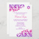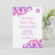 A stylish purple and hot pink Bat Mitzvah invitation. Featuring pretty flourish swirls and Star of David. Contact the designer to add Hebrew name.