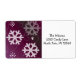 A pretty design featuring snowflakes in various shapes and sizes on a purple background. Elegant swirls accent it. Customise with your address as desired.