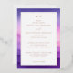 This elegant wedding invitation features a gradient background transitioning from deep purple to soft pink and light yellow, creating a warm, sunset-like ambiance. The design is framed by a thin gold border, adding a touch of sophistication. Centred text in a mix of bold serif and cursive fonts highlights the union being celebrated, while customisable placeholders allow for personalisation with names, dates, and locations. The overall style exudes formality and celebration, making it perfect for a memorable wedding event.