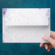 Beautiful and elegant purple tint wedding envelope design featuring vines and roses around the border and a fade of a heart in the centre. The design has a printed faux texture for an old paper look. This same design comes in green, red, pink, purple, blue, antique gold and bright gold. This design also comes on many other paper products and also postage to suit all your wedding set needs.