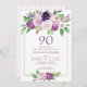 Elegant Purple | Violet Floral 90th Birthday Invitation