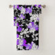 Elegant Purple Violet White Black Floral Pattern Bath Towel Set