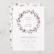 Elegant Purple Wedding Invitation. Soft, dreamy, and romantic, this stylish wedding invitation features a gorgeous watercolor wreath of leaves & flowers hand-painted in monochromatic shades of purple, plum, and soft pinks with matching purple script & text. The back of the invitation includes a whimsical pattern of the same artwork. Find matching items in the Elegant Purple Botanical Wedding Collection.