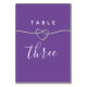 Help guests find their seats in style with this elegant purple wedding table number card. Featuring a chic violet background, romantic silver rope heart, and sophisticated calligraphy script, this minimalist design perfectly complements a modern and timeless wedding reception setup.