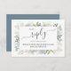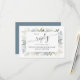 This design features a QR code RSVP online floral enclosure card, with an elegant template dusty blue flowers, a watercolor greenery website guest reply, roses baby's breath foliage leaves, a stylish trendy calligraphy script simple, scan scannable URL web link, romantic elegant white sage green, custom classy insert response card, with a soft romantic garden botanical style, an elegant blue floral stationery suite