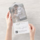 Elegant QR Code Photo Wedding all in one invitation featuring elegant script calligraphy details and classic text overlay on a portrait vertical photo. There is a tear-off RSVP card with QR Code. Click the edit button to customise this design.