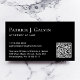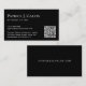 Modern black professional business card with your name in an elegant white serif font and your title and contact information in clean and simple white typography. Input a URL address to create a scannable QR code linked to your website, social media profiles, or any other platform that showcases your work, making it easy for customers and clients to explore your expertise. On the back, customise additional text or leave blank.
