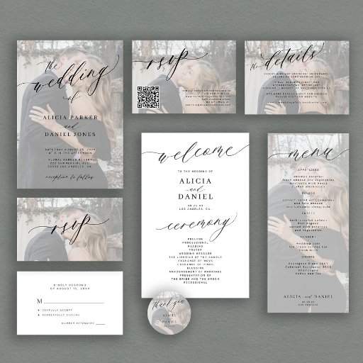 Elegant script photo overlay wedding suiteDesigned by Anka Designs