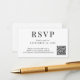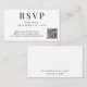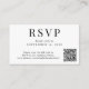 Classic black and white wedding RSVP enclosure card featuring "RSVP" in elegant serif typography. Input your wedding website address to create a QR code that your guests can scan to RSVP online and obtain additional wedding details such as accommodations and directions.