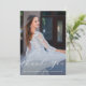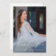 This elegant quinceanera thank you card features a one photo front with pretty white calligraphy script, a sweet editable thank you message is on the back and features a watercolor airy blue floral bouquet. This fifteenth birthday thank you card is editable for a variety of occasions, or to update to your own personal thank you message.