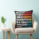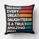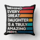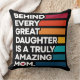 Elegant Mothers day Throw Pillow featuring a cute saying that reads "Behind Every Great Daughter Is A Truly Amazing Mum." With colourful stripes.