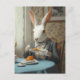 A realistic anthropomorphic white rabbit dressed in vintage attire enjoys a refined tea time in a Victorian-style setting. The scene exudes sophistication with detailed textures and warm, nostalgic lighting.