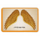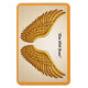 A simple, golden-winged design symbolising freedom and transcendence, set against a light dotted background, evoking elevation and the pursuit of limitless potential. "Original Image was generated by Meta AI. AI generated artwork. Licensed under CC BY-SA 4.0."