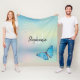 Pretty sapphire blue butterfly with gorgeous girly faux glitter highlights make this beautiful Fleece Blanket a uniquely feminine elegant design to enhance your bedroom decor. Decorative font typography name & initial can be customised with your own. Unique & stunning in your own bedroom, for your daughter or as a gift for someone special.