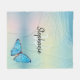 Elegant Rainbow Blue Butterfly Glitter Monogram Fleece Blanket