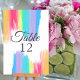 Beautiful rainbow wedding table number sheet with pretty, artistic paint strokes full of bright colour. This colourful party reception decor is perfect for an artistic couple or a gay and lesbian reception.