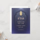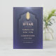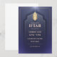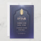 Elegant Ramadan Kareem Iftar invitation design featuring a glowing golden lantern hanging inside an Islamic arch frame with luxurious blue and gold colors. Perfect for Ramadan event invitations, community iftar gatherings, mosque events, and festive Islamic celebration announcements. High-quality vector style layout suitable for print and digital use.