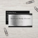 Elegant Real Estate business cards you can customise with classy design that includes a simulated silver metallic like background, house symbol, and text layout you can customise. Best business cards for themes related to Realty, real estate, broker, Realtor, or agent .