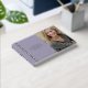 In Loving Memory, Funeral / Celebration of Life photo guestbook, with a simple, minimal, and elegant design with a soft velvety hardcover in an attractive purple, and real foil stripes, and text details. Choose from three size options and three foil colours: gold, silver, or rose gold. Personalise it with your loved one information on the front and spine and add on the back any message you like.