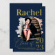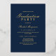 This elegant and modern graduation invitation is perfect for your special day. It features real gold foil typography including the graduate's name, graduation year, and "Class of," on top of a simple navy blue background and a brushstroke cut-out halo photo of the guest of honour. It's minimal, chic, unique, and stylish; the perfect design to impress your guests.